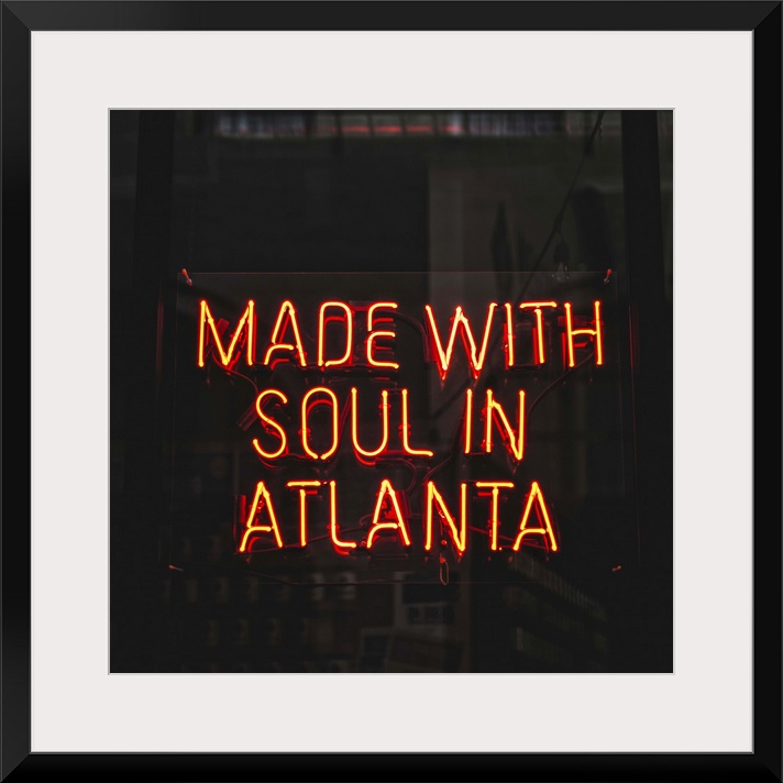 <p>Made With Soul In Atlanta, a yellow neon sign in the window of Switchyards Downtown Club in Atlanta, Georgia.</p>