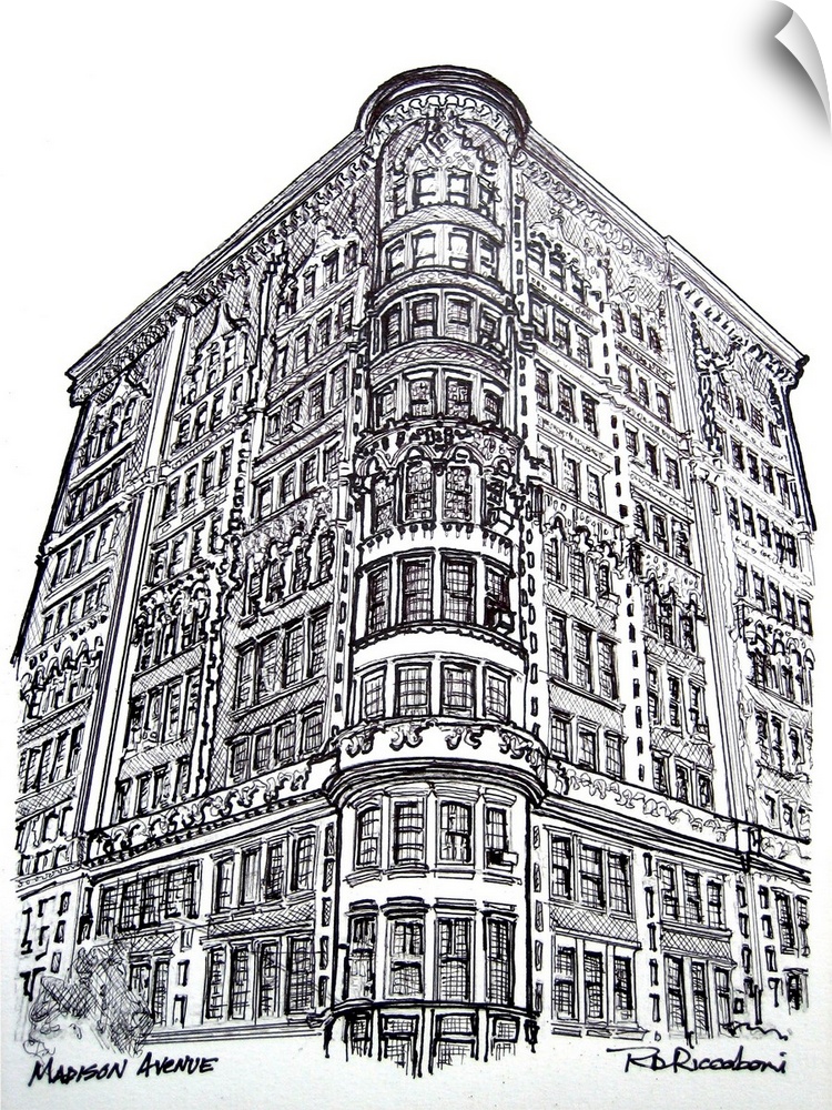 <p>Madison Avenue, New York City, pen and ink drawing by RD Riccoboni.</p>