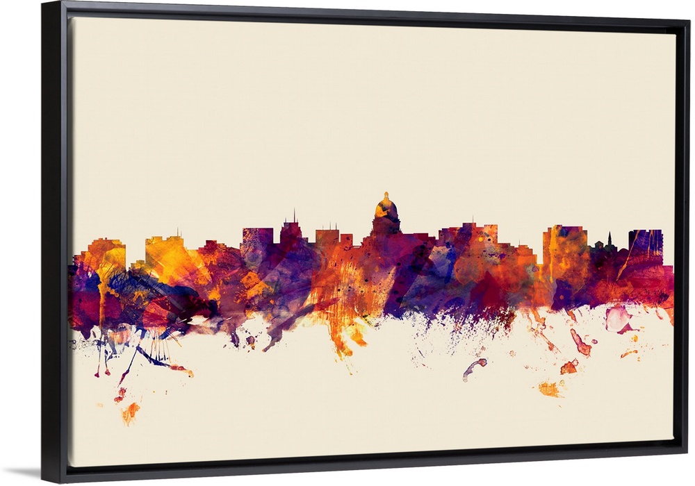 <p>Contemporary artwork of the Madison city skyline in watercolor paint splashes.</p>