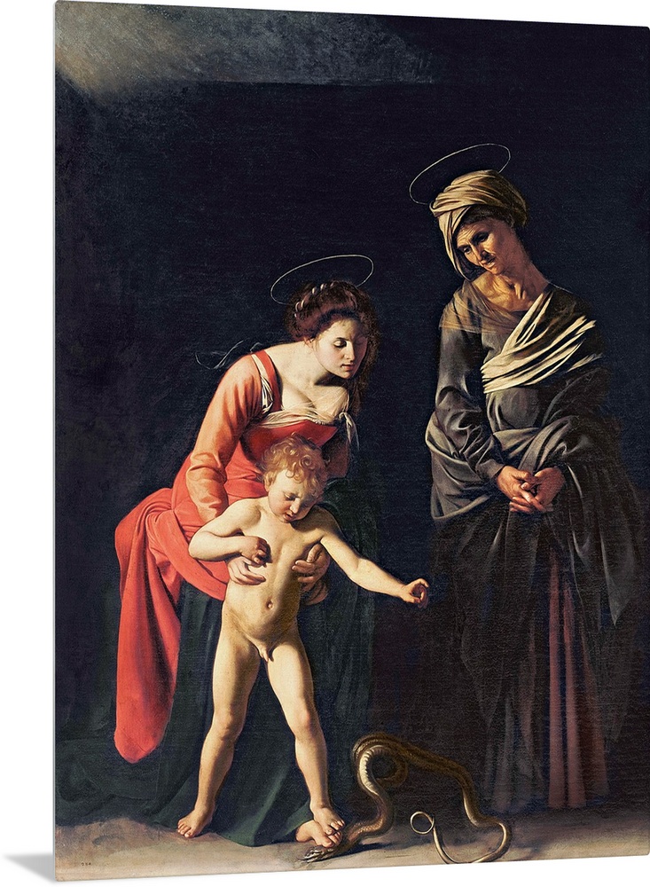 <p>XIR60355 Madonna and Child with a Serpent, 1605 (oil on canvas) by Caravaggio, Michelangelo Merisi da (1571-1610); 292x211 cm; Galleria Borghese, Rome, Italy; Italian, out of copyright</p>