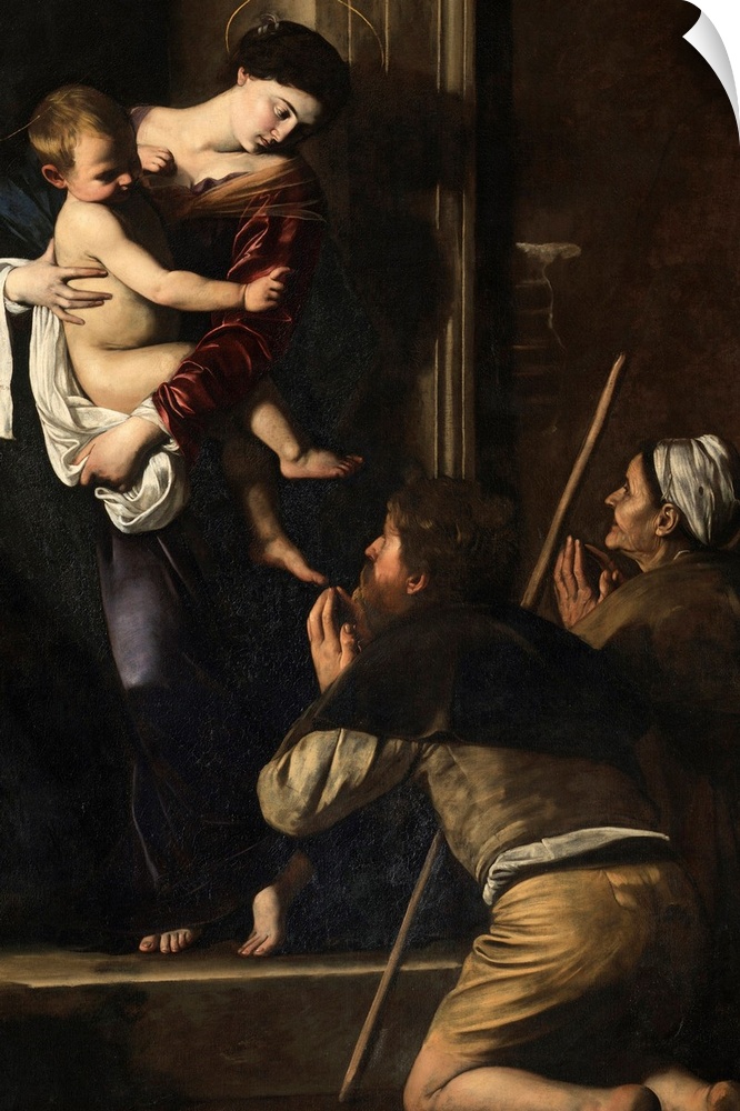 <p>Madonna di Loreto, by Michelangelo Merisi known as Caravaggio, 1604 - 1606 about, 17th Century, oil on canvas, cm 260 x 150 - Italy, Lazio, Rome, SantAgostino Church, Cavalletti Chapel. All. The Virgin Mary holding the Infant Jesus in her arms threshold k</p>