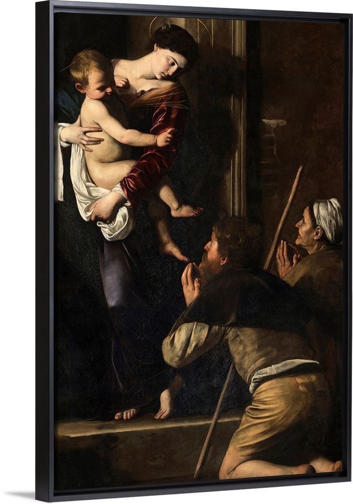 <p>Madonna di Loreto, by Michelangelo Merisi known as Caravaggio, 1604 - 1606 about, 17th Century, oil on canvas, cm 260 x 150 - Italy, Lazio, Rome, SantAgostino Church, Cavalletti Chapel. All. The Virgin Mary holding the Infant Jesus in her arms threshold k</p>