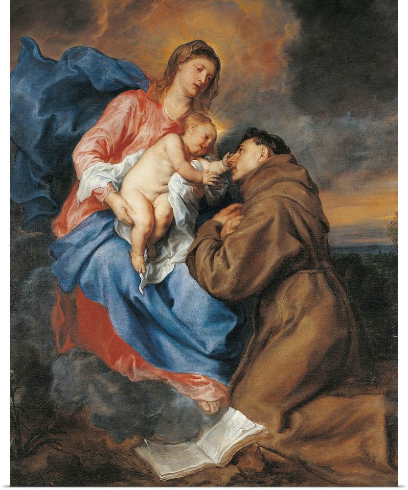 <p>The Madonna with Child and St Anthony of Padua, by Anton o Antoon Van Dyck, 17th Century, oil on canvas, cm 189 x 158 - Italy, Lombardy, Milan, Brera art gallery. All. Detail Madonna with Child St Anthony of Padua friar Jesus Child naked caress devotion d</p>