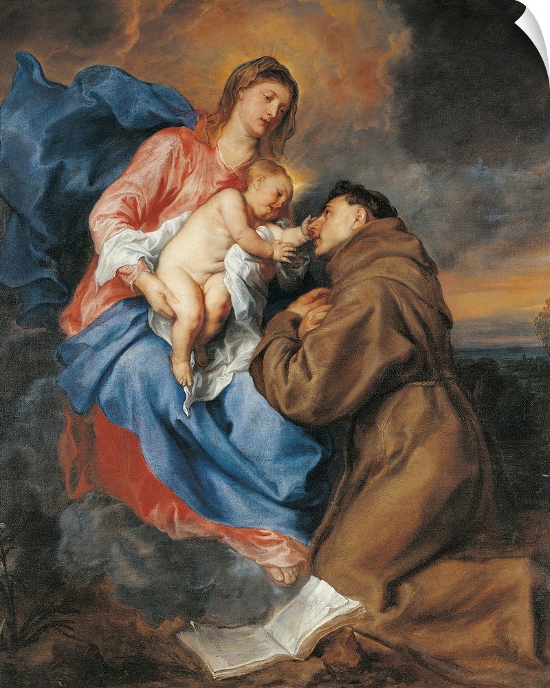 <p>The Madonna with Child and St Anthony of Padua, by Anton o Antoon Van Dyck, 17th Century, oil on canvas, cm 189 x 158 - Italy, Lombardy, Milan, Brera art gallery. All. Detail Madonna with Child St Anthony of Padua friar Jesus Child naked caress devotion d</p>
