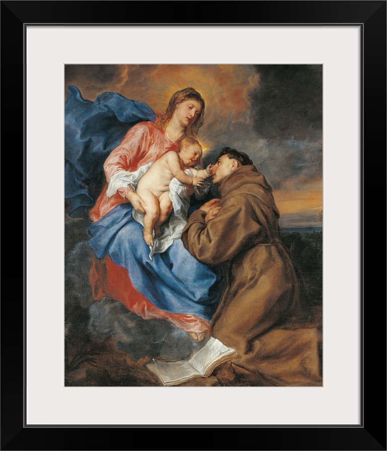 <p>The Madonna with Child and St Anthony of Padua, by Anton o Antoon Van Dyck, 17th Century, oil on canvas, cm 189 x 158 - Italy, Lombardy, Milan, Brera art gallery. All. Detail Madonna with Child St Anthony of Padua friar Jesus Child naked caress devotion d</p>