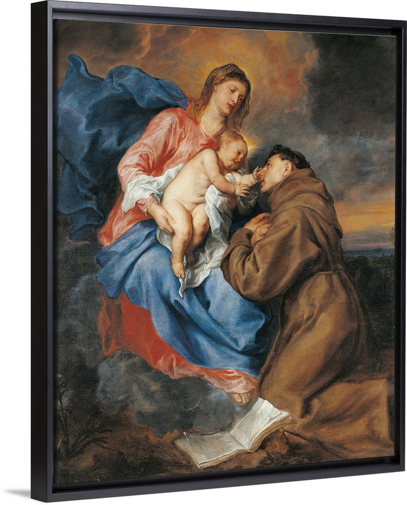 <p>The Madonna with Child and St Anthony of Padua, by Anton o Antoon Van Dyck, 17th Century, oil on canvas, cm 189 x 158 - Italy, Lombardy, Milan, Brera art gallery. All. Detail Madonna with Child St Anthony of Padua friar Jesus Child naked caress devotion d</p>