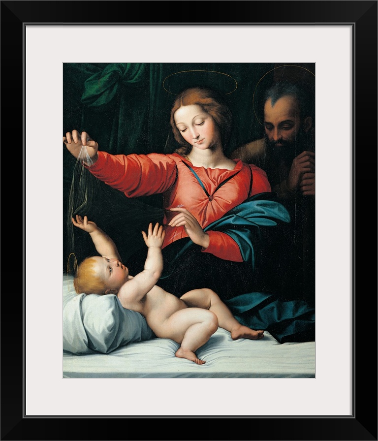 <p>Madonna with the Veil, by attributed to Giovanni Battista Salvi known as Sassoferrato, 1580 - 1599 about, 16th Century, oil on canvas, cm 85 x 69 - Italy, Lombardy, Milan, Brera Art Gallery. All. Virgin Madonna nude Baby Child Jesus St Joseph veil red mat</p>