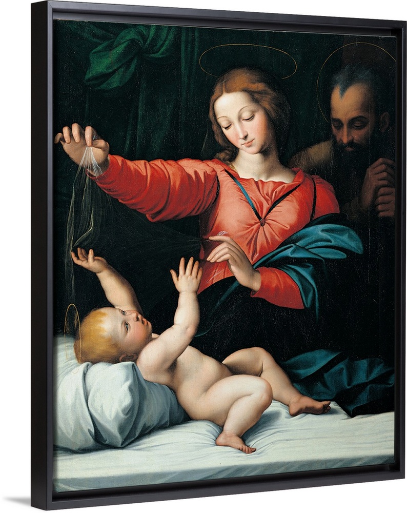<p>Madonna with the Veil, by attributed to Giovanni Battista Salvi known as Sassoferrato, 1580 - 1599 about, 16th Century, oil on canvas, cm 85 x 69 - Italy, Lombardy, Milan, Brera Art Gallery. All. Virgin Madonna nude Baby Child Jesus St Joseph veil red mat</p>