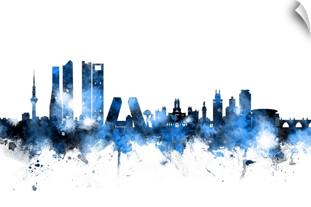 <p>Watercolor art print of the skyline of Madrid, Spain.</p>