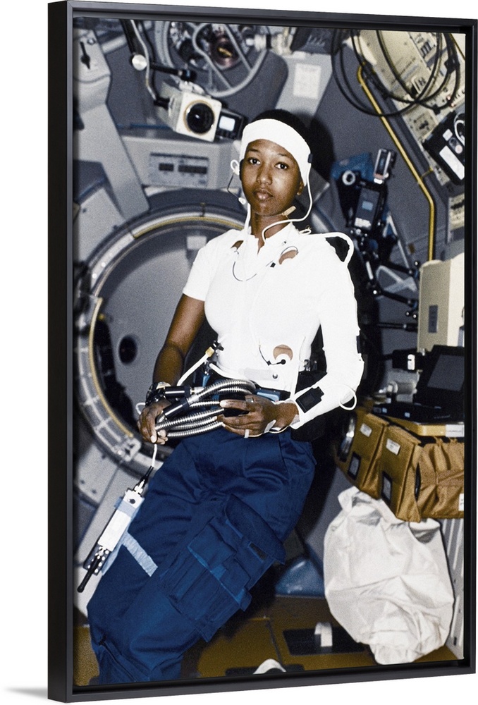 <p>MAE JEMISON (1956- ). American astronaut, physician, and the first black woman in space. Photographed aboard the Space Shuttle Endeavour, 1992.</p>