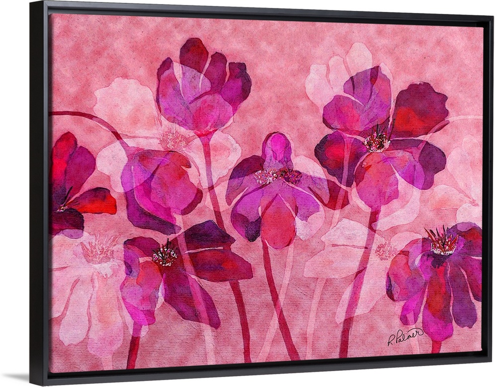 <p>A horizontal image of a group of flowers in varies shades of pink.</p>
