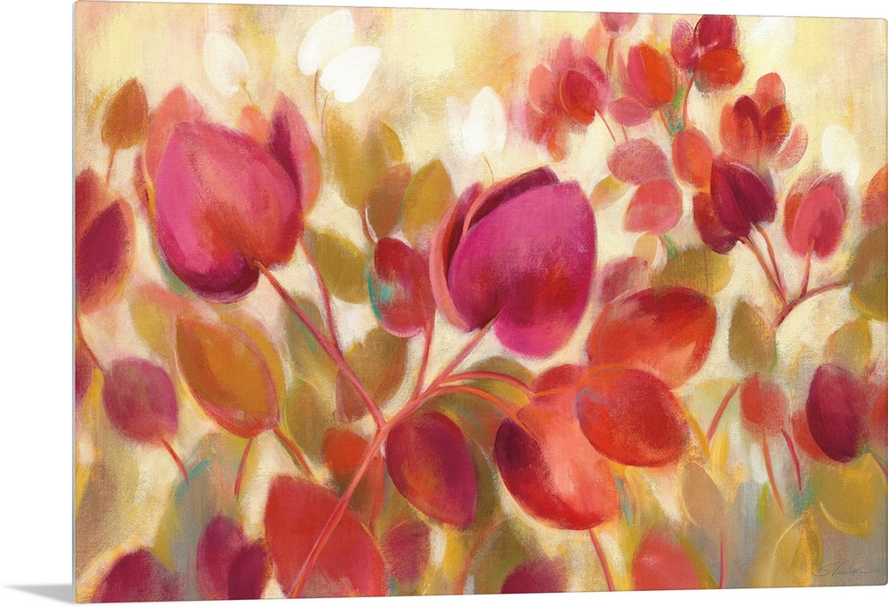 <p>Contemporary painting of bright flowers in warm tones.</p>