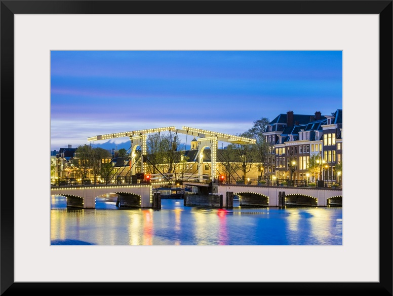 <p>Netherlands, North Holland, Amsterdam. Magere Brug, Skinny Bridge, on the Amstel River at night.</p>