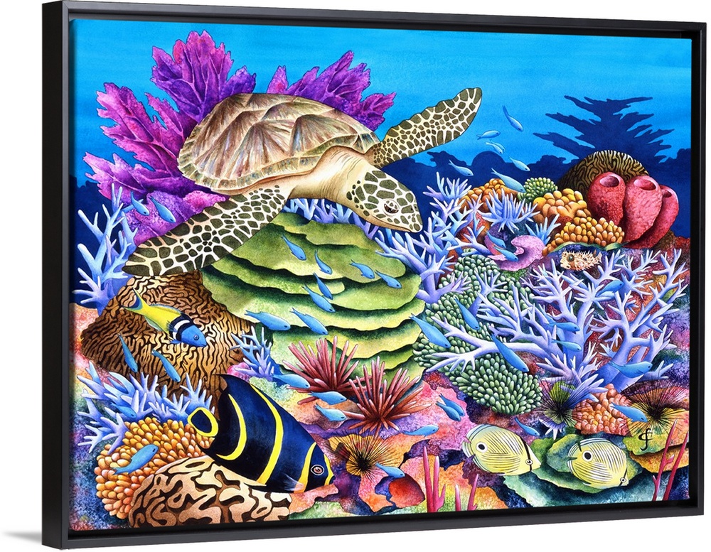 Art Blue Wall Art Contemporary Art Wildlife Painting Carolyn Steele Watercolor Wildlife Marine Life Coral Fish Tropical Fish Turtle