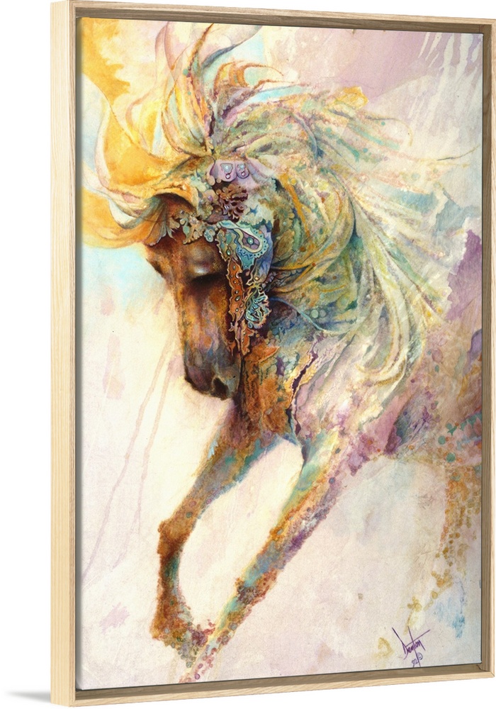 <p>Contemporary painting of a horse with a colorful magical looking mane.</p>