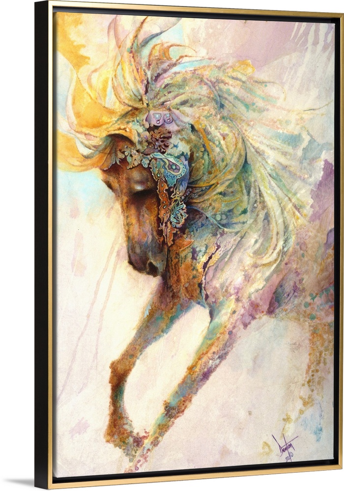 <p>Contemporary painting of a horse with a colorful magical looking mane.</p>