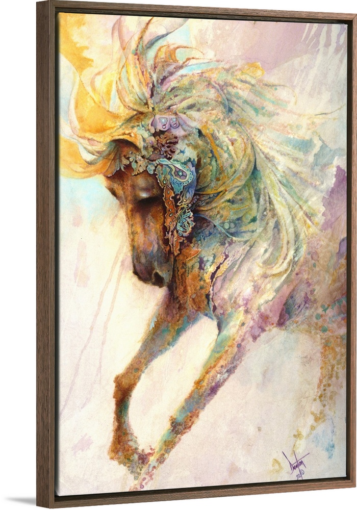 <p>Contemporary painting of a horse with a colorful magical looking mane.</p>