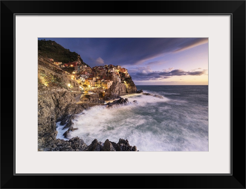 <p>Magical light envelops the famous village of Manarola during an autumn sunset, Manarola, Cinque Terre National Park, UNESCO World Heritage Site, La Spezia, Liguria, Italy, Europe</p>