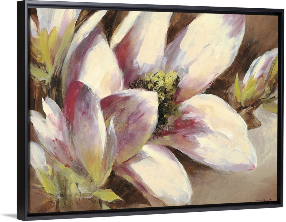 <p>Contemporary painting of a pink magnolia flower.</p>