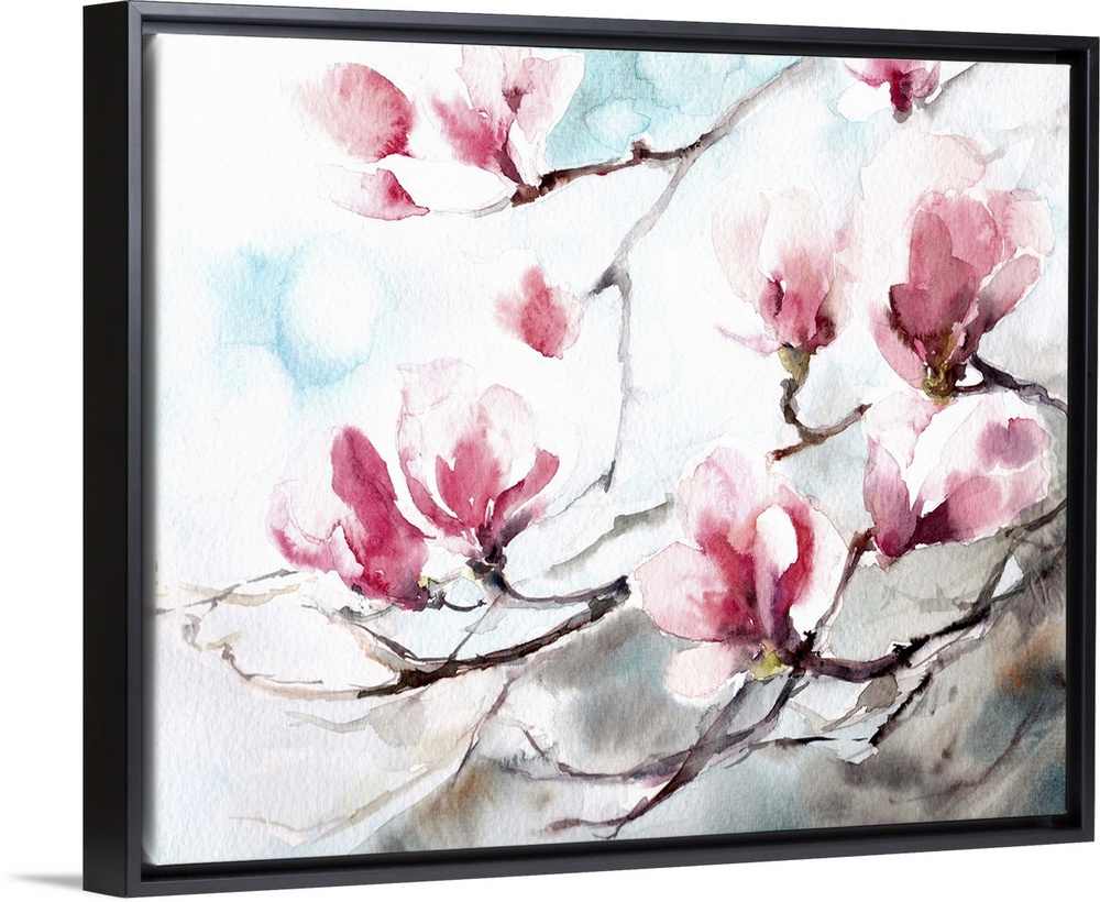 <p>A contemporary watercolor painting of magnolia flowers.</p>