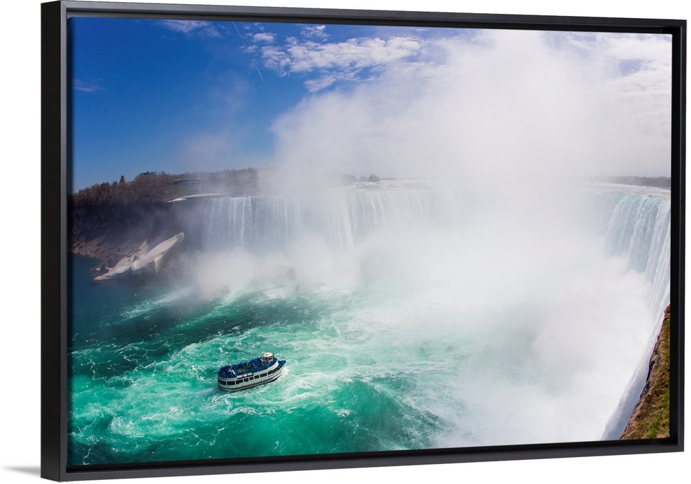 <p>Maid of the Mist boat tours taking tourists up close to the crashing water at Horseshoe Falls.</p>