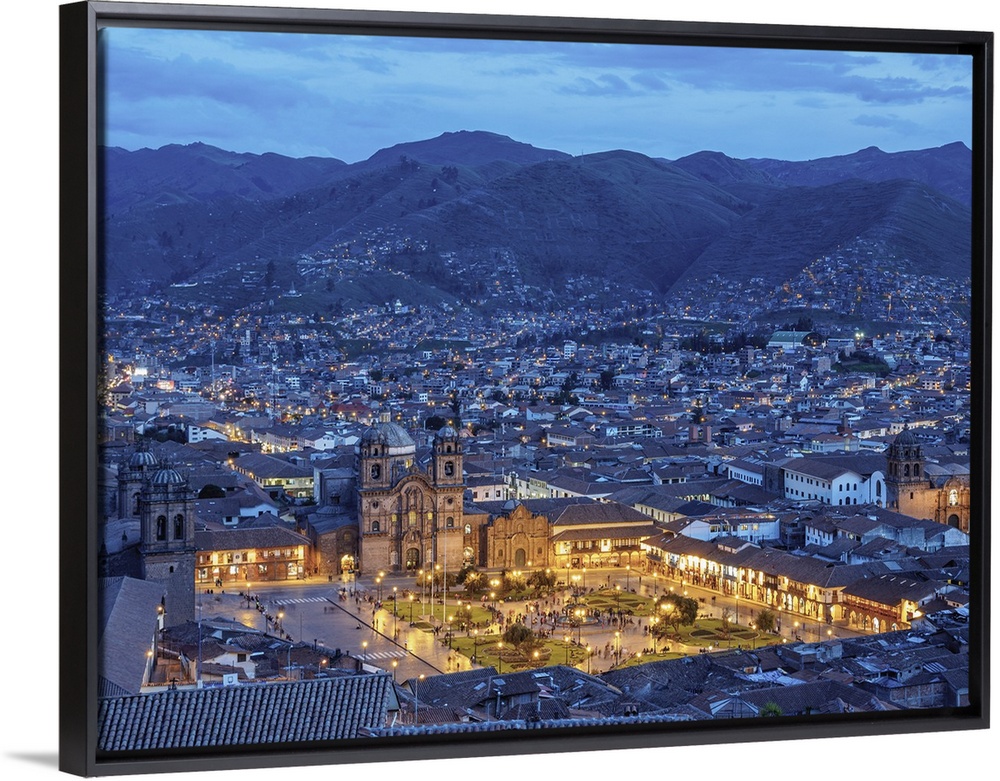 <p>Main Square at twilight, Old Town, elevated view, Cusco, Peru</p>
