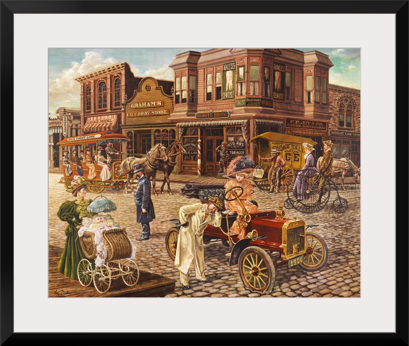 Americana Art Cityscapes Contemporary Art Lee Dubin History Painting Transportation Car Classic and Vintage Cars