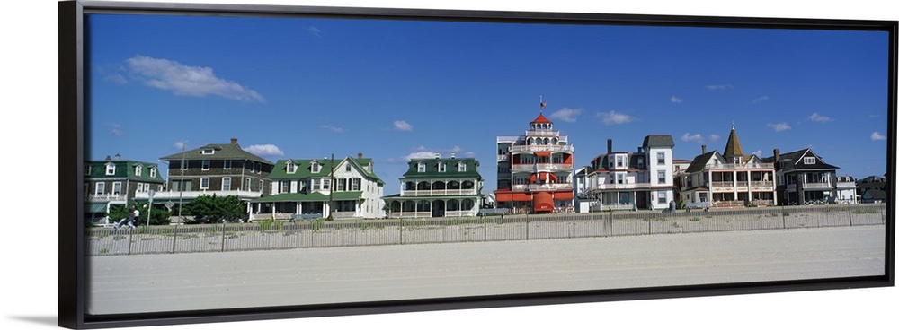 <p>Bright, beach homes on a cloudy day on Main Street Cape in May, New Jersey.</p>