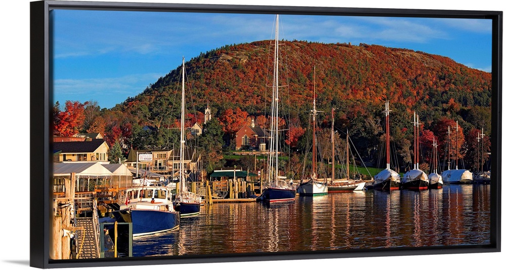 <p>USA, Maine, Camden, The harbor in autumn.</p>