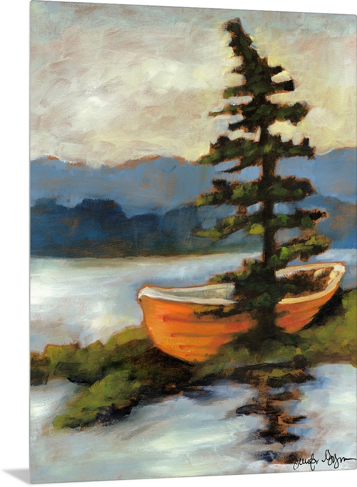 Art Contemporary Art Rivers, Lakes, and Oceans Trees Decorative Art Jennifer Goldberger Lake House Art Landscapes Painting Boat