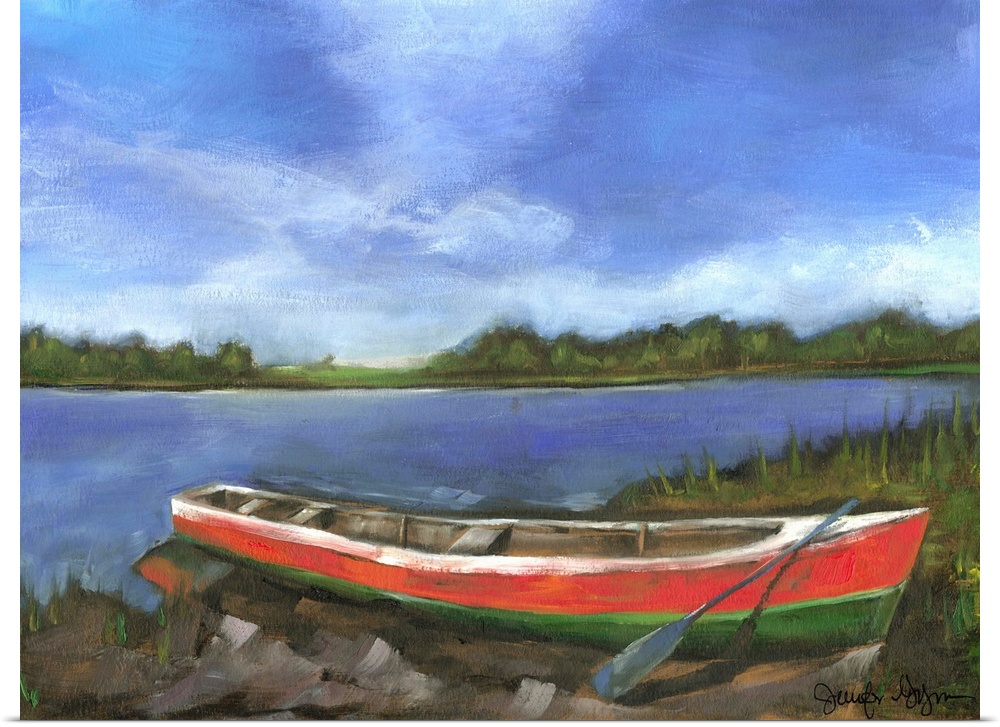 Art Blue Wall Art Decorative Art Jennifer Goldberger Landscapes River, Creek and Stream Painting Transportation Boat