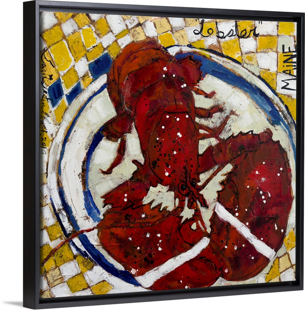 Art Contemporary Art Erin McGee Ferrell Food and Drink Food Seafood Painting Red Wall Art Wildlife Marine Life Lobster Yellow Wall Art