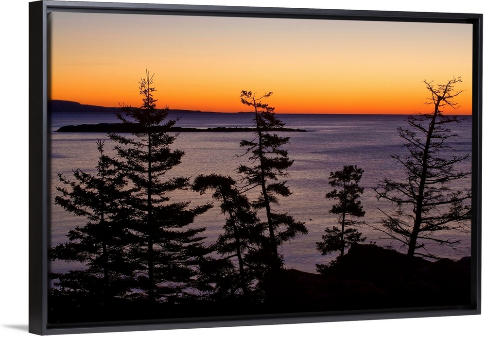 <p>USA, Maine, Mount Desert Island, Bar Harbor, Trees at dawn along the park loop road.</p>