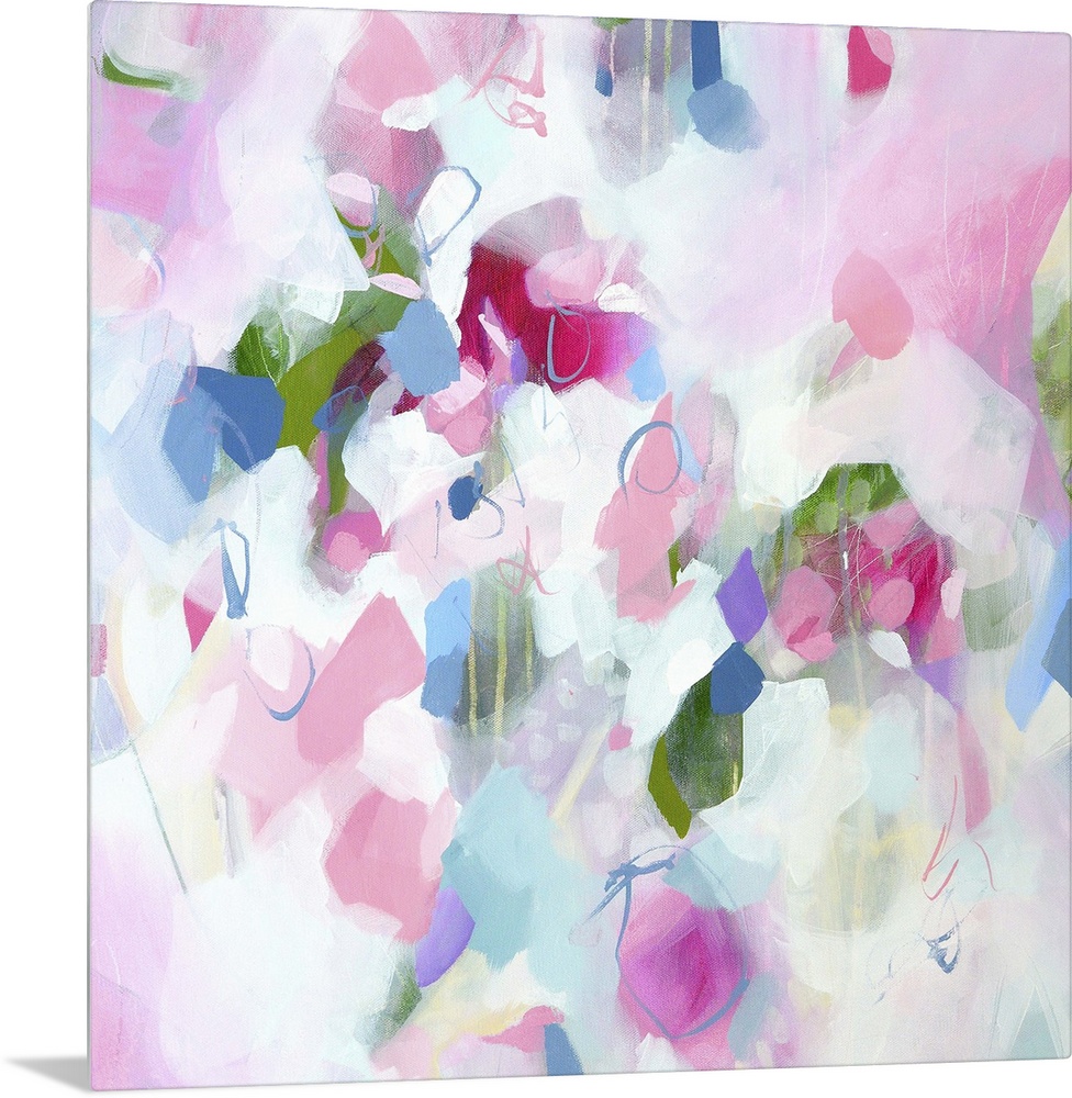<p>Abstract artwork in cheerful shades of pink, white, and blue.</p>