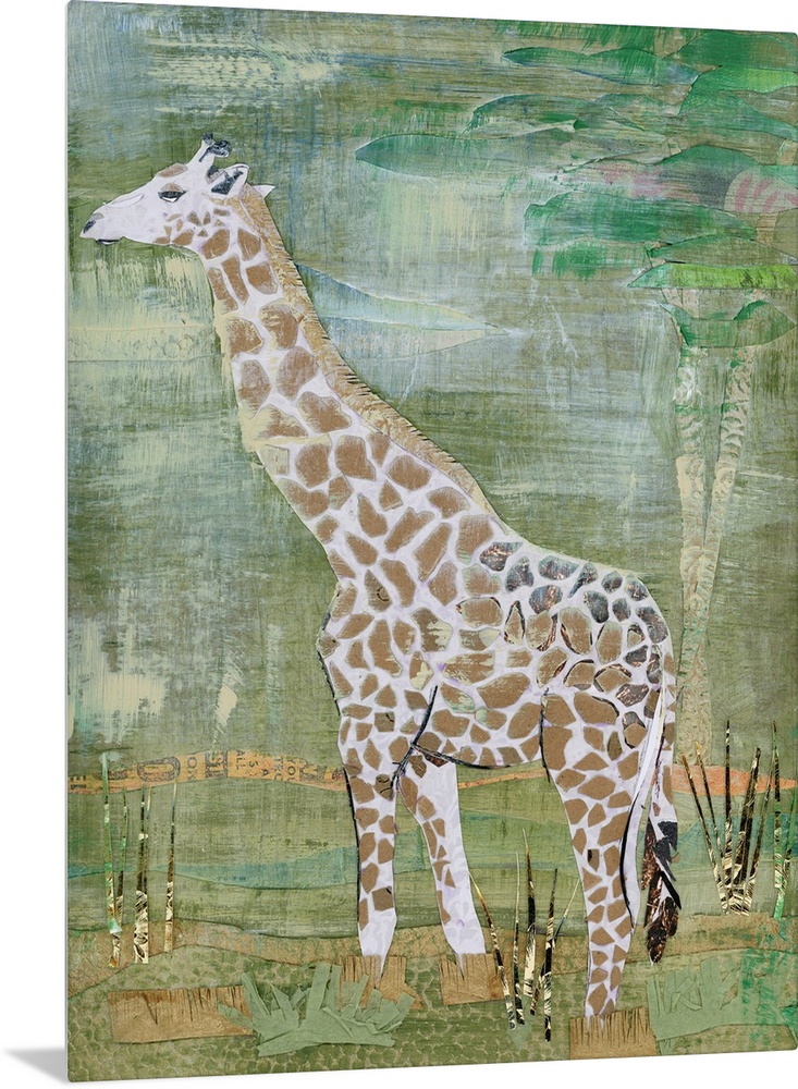 Art Contemporary Art Wildlife Green Wall Art Mixed Media Art Wildlife Giraffe