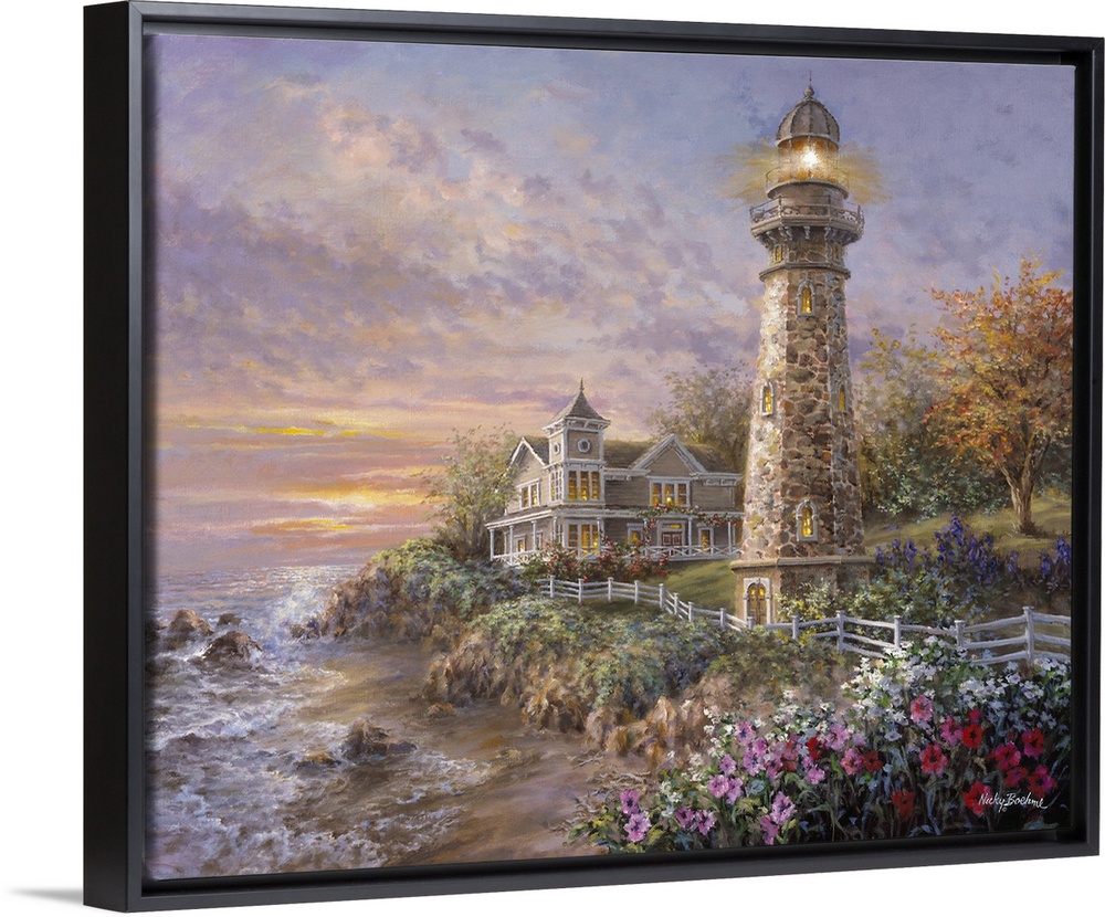 <p>Nicky Boehme imagines a world full of light and goodness in paintings that capture idyllic scenes of the laid-back life. Boehme is the consummate artist who painted as a young child and throughout her storied professional life. The dramatic interplay of light, color and mood create soothing scenery for wall art that will complement the atmosphere in quiet spaces such as bedrooms, reading nooks or dens. The world through the eyes and skilled brush strokes of Nicky Boehme glitters with romanticism and realism. You can almost taste the snow flurries covering a winter scene or hear the brook gurgling past a remote homestead.</p>