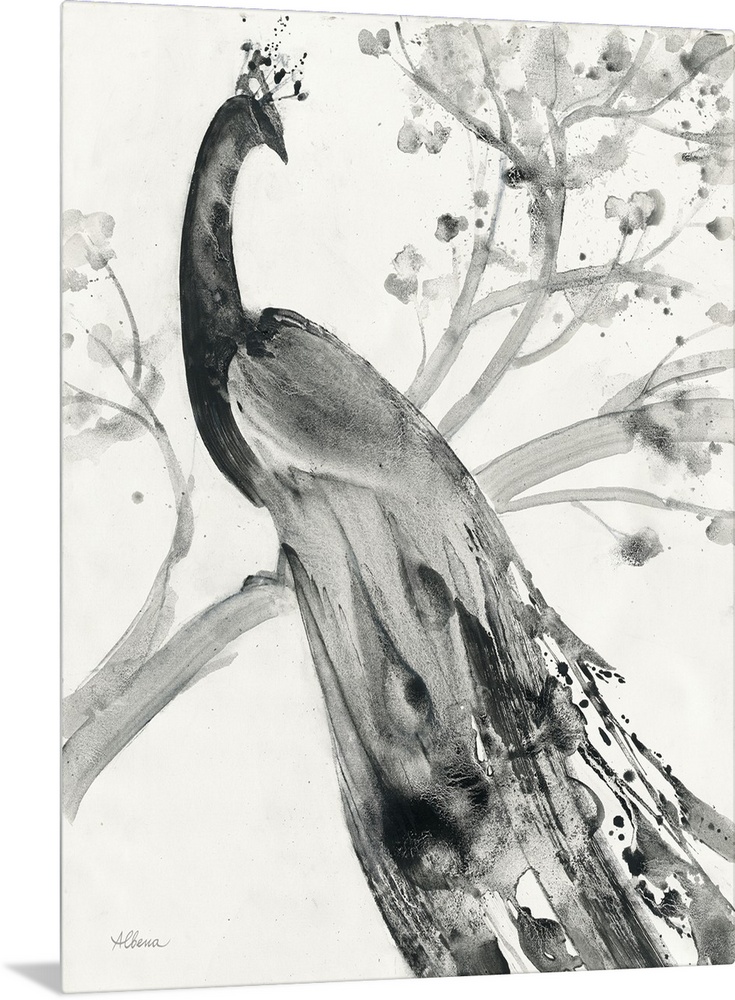 Art Black and White Wall Art Decorative Art Albena Hristova Painting Wildlife Peacock