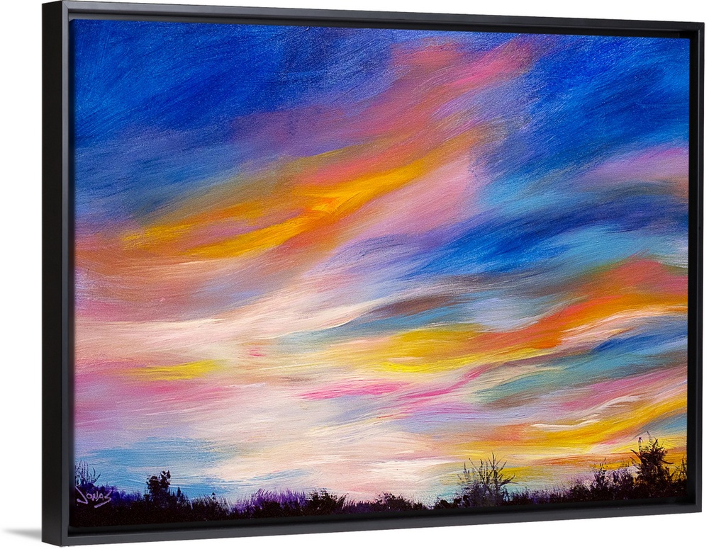 <p>A contemporary painting of a colorful skyscape at sundown.</p>