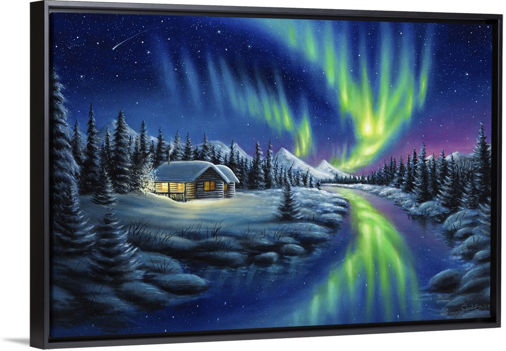 Art Chuck Black Blue Wall Art Contemporary Art Landscapes River, Creek and Stream Skyscapes Northern Lights Snowscapes Painting