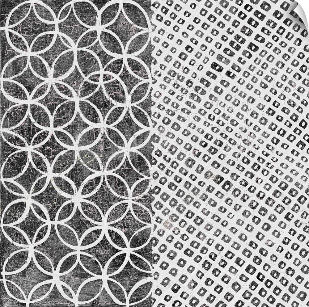 <p>A square decorative image of black and white shapes and patterns within rectangle sections.</p>