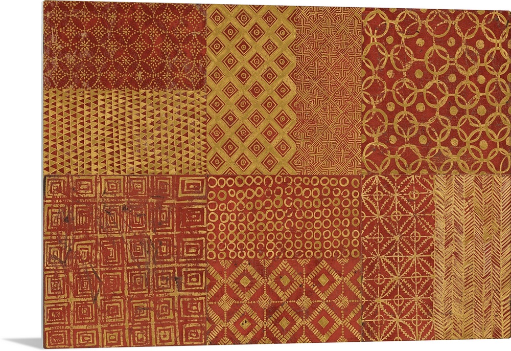 <p>A decorative image of shapes and patterns within rectangle sections in gold and orange.</p>