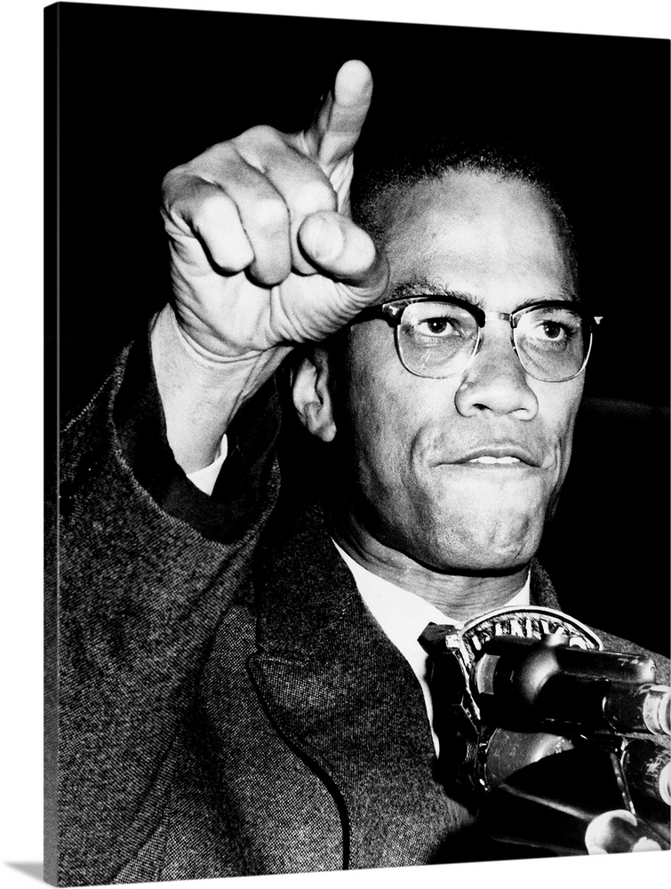 <p>MALCOLM X (1925-1965). Born Malcolm Little. American religious and political leader. Photographed while giving a speech at a rally in Harlem, New York City, c1963.</p>