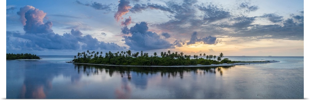 <p>Maldives, Hadhunmathee Atoll, Indian ocean, Sunset on the deserted island between Dhiyadhoo and Maarehaa in Hadhunmathee Atoll.</p>