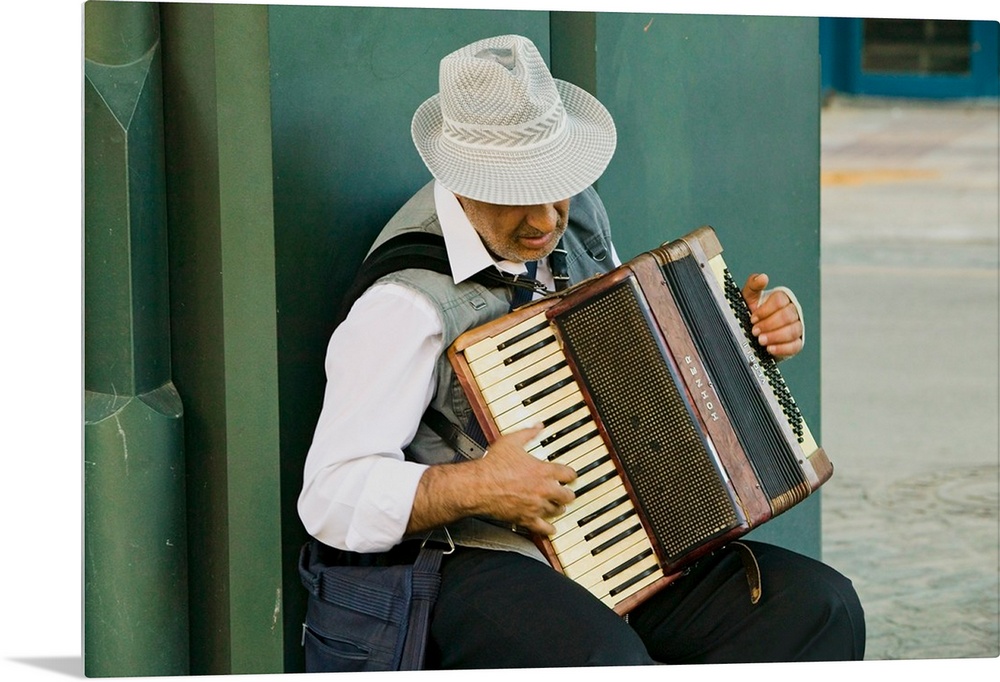 <p>Male accordion player in town center of Sevilla, Andalucia, Southern Spain</p>