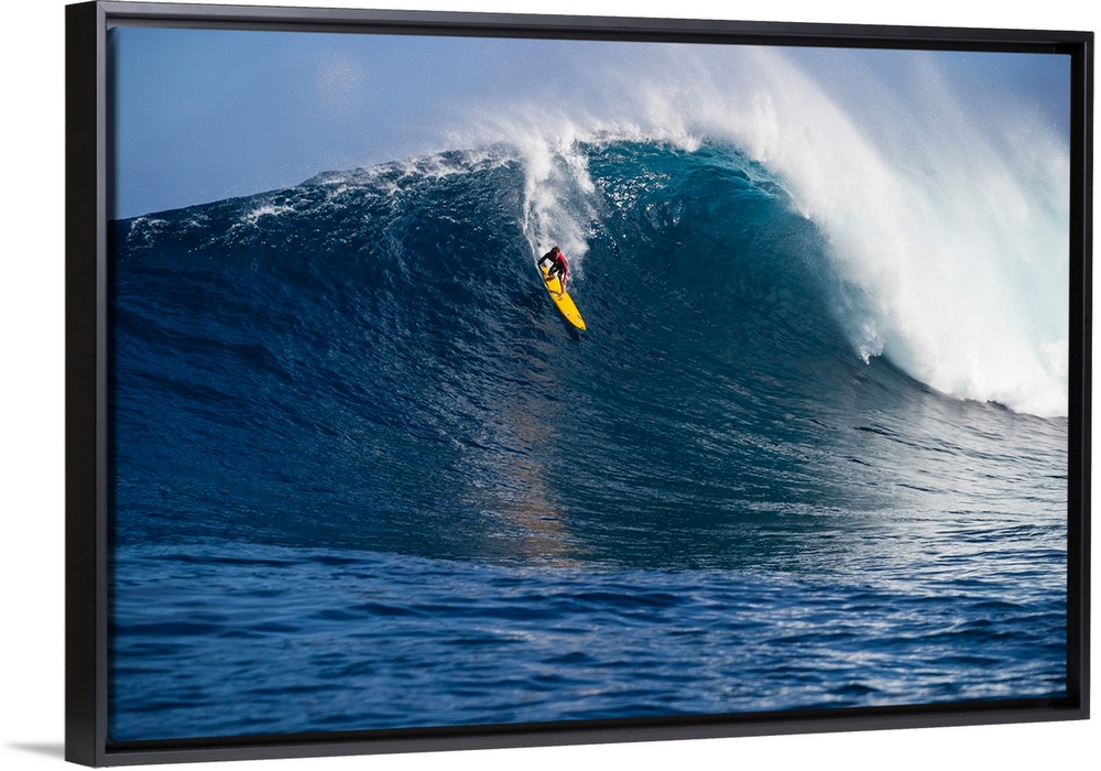 <p>Male surfer surfing wave in Pacific Ocean, Peahi, Hawaii, USA</p>