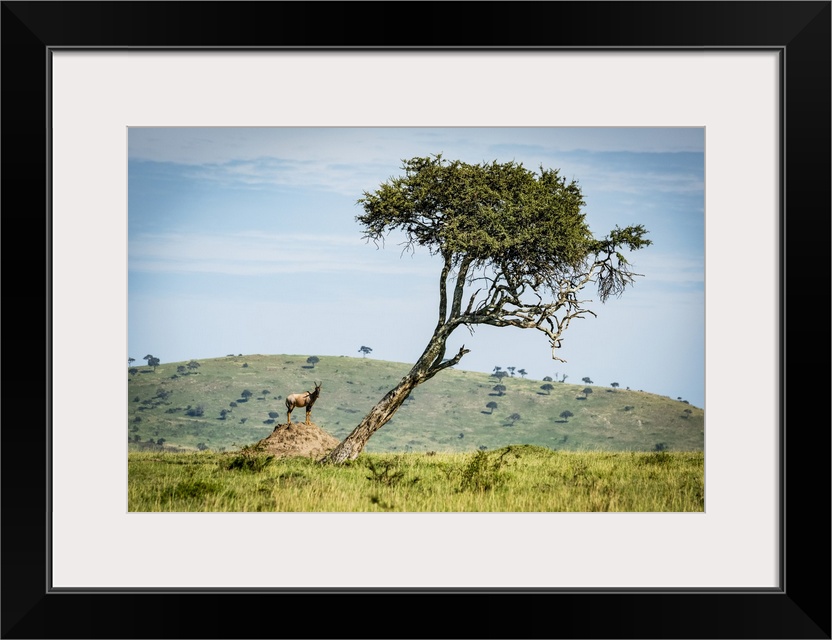 <p>Male topi (Damaliscus lunatus jimel) on termite mound near tree, Klein's Camp, Serengeti National Park; Tanzania</p>
