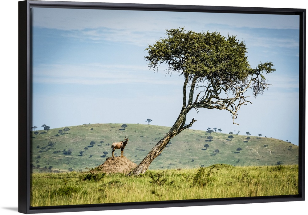<p>Male topi (Damaliscus lunatus jimel) on termite mound near tree, Klein's Camp, Serengeti National Park; Tanzania</p>