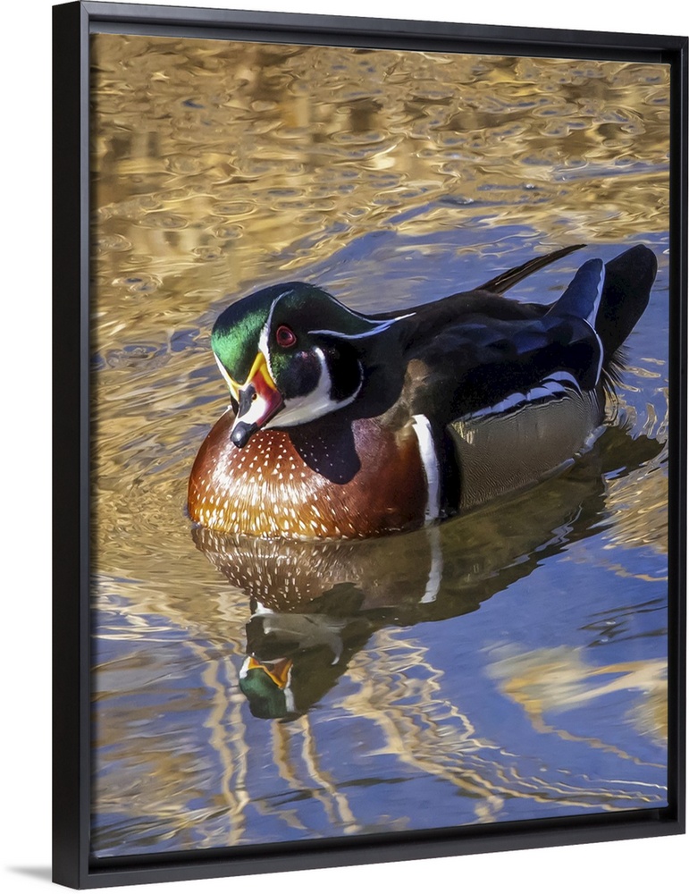 <p>Male wood duck (aix sponsa) in water. Colorado, united states of America.</p>