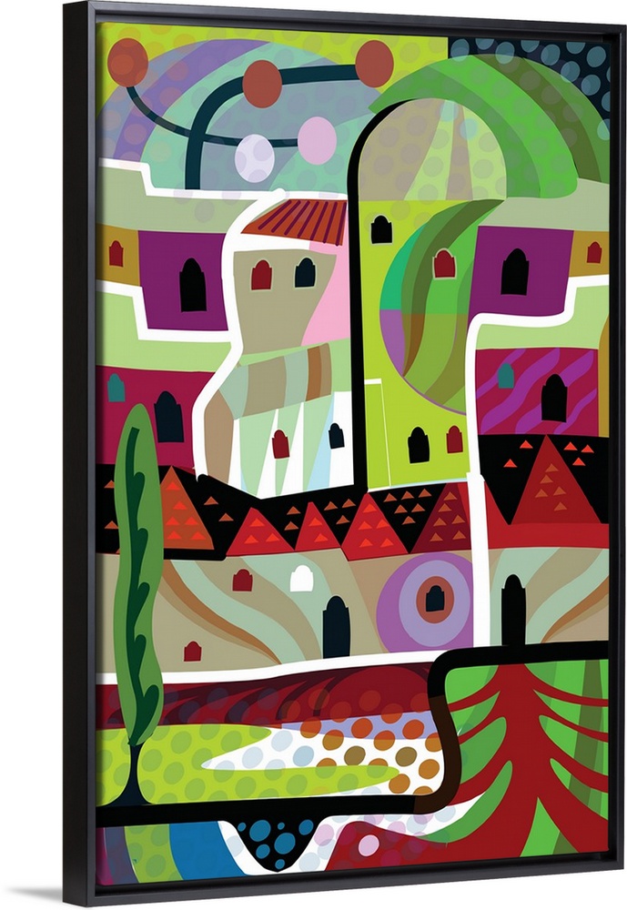 <p>Digital vertical illustration of an abstract landscape.</p>