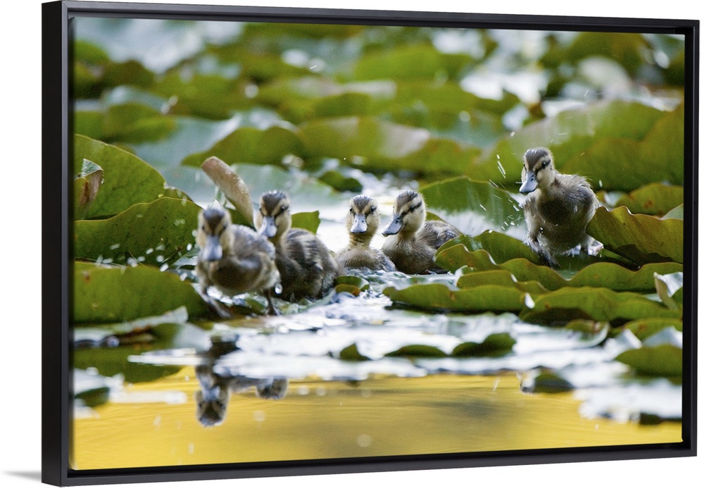 <p>Mallard ducklings, Anas platyrhynchos, Stanley Park, British Columbia</p>